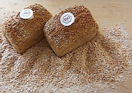 aus frisch geflocktem Dinkel, Dinkelvollkornmehl und Dinkelsauerteig.